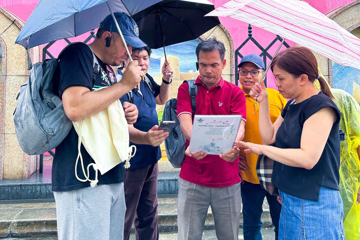 När du har slutfört varje utmaning/aktivitet får du ett kort med en ledtråd i form av ett foto. Avkoda ledtråden och bege dig till den sista platsen för att slutföra den sista utmaningen och avslöja Kampong Glams mysterier. Förbered dig på en rolig och engagerande tur som tar dig med på en resa genom Kampong Glams rika historia och kultur.